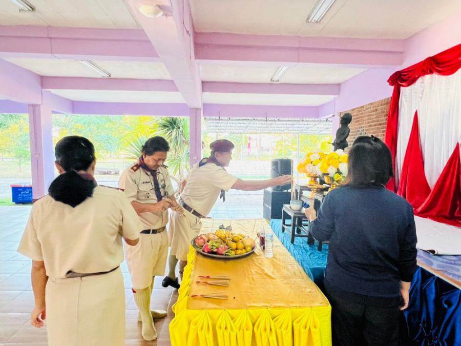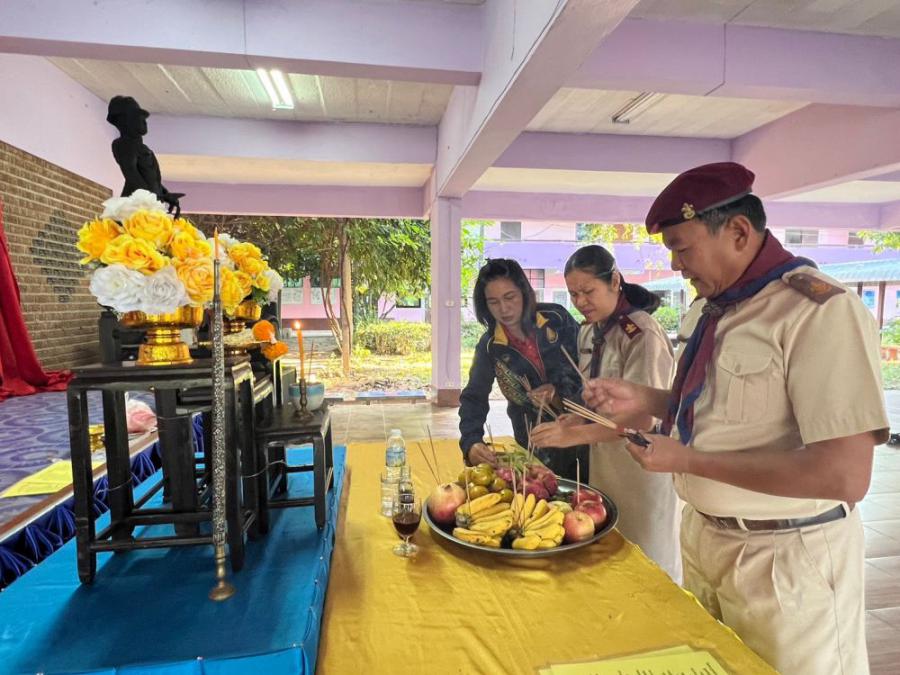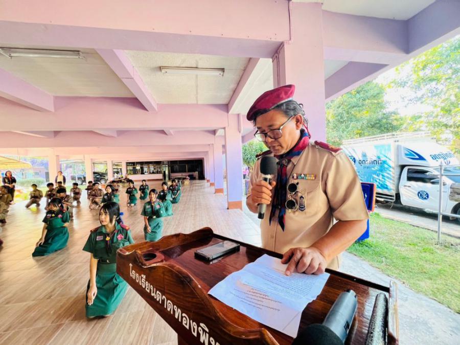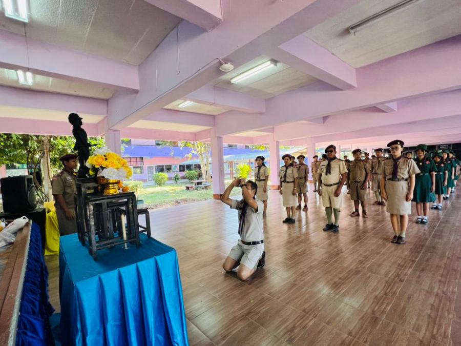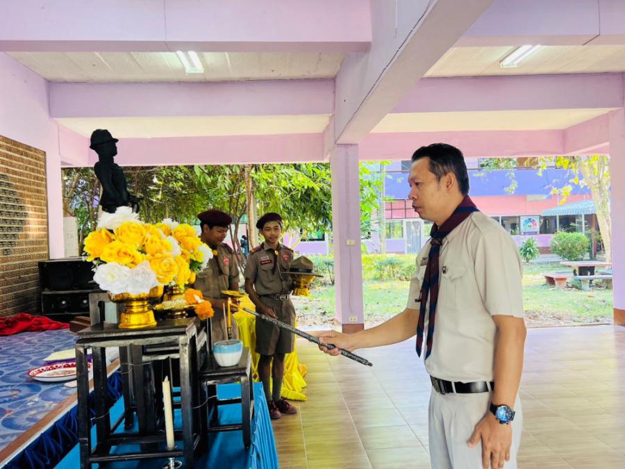 วันพฤหัสบดีที่ 21 พฤศจิกายน 2567 นำโดย นายวัชรินทร์ ประเสริฐสังข์ ผู้อำนวยการฯ พร้อมด้วย ครูผู้กำกับลูกเสือ นำนักเรียนลูกเสือเข้าร่วมพิธีถวายราชสดุดี เนื่องในวันสมเด็จพระมหาธีรราชเจ้า ประจำปี 2567 เพื่อน้อมรำลึก ในพระมหากรุณาธิคุณ พระบาทสมเด็จพระมงกุฎเกล้าเจ้าอยู่หัว พระผู้พระราชทานกำเนิดลูกเสือไทย ณ โรงเรียนตาดทองพิทยาคม S:0
